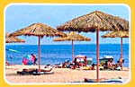 Собственный, песчаный, оборудован теневыми навесами, лежаками. Прокат катамаранов, катеров.